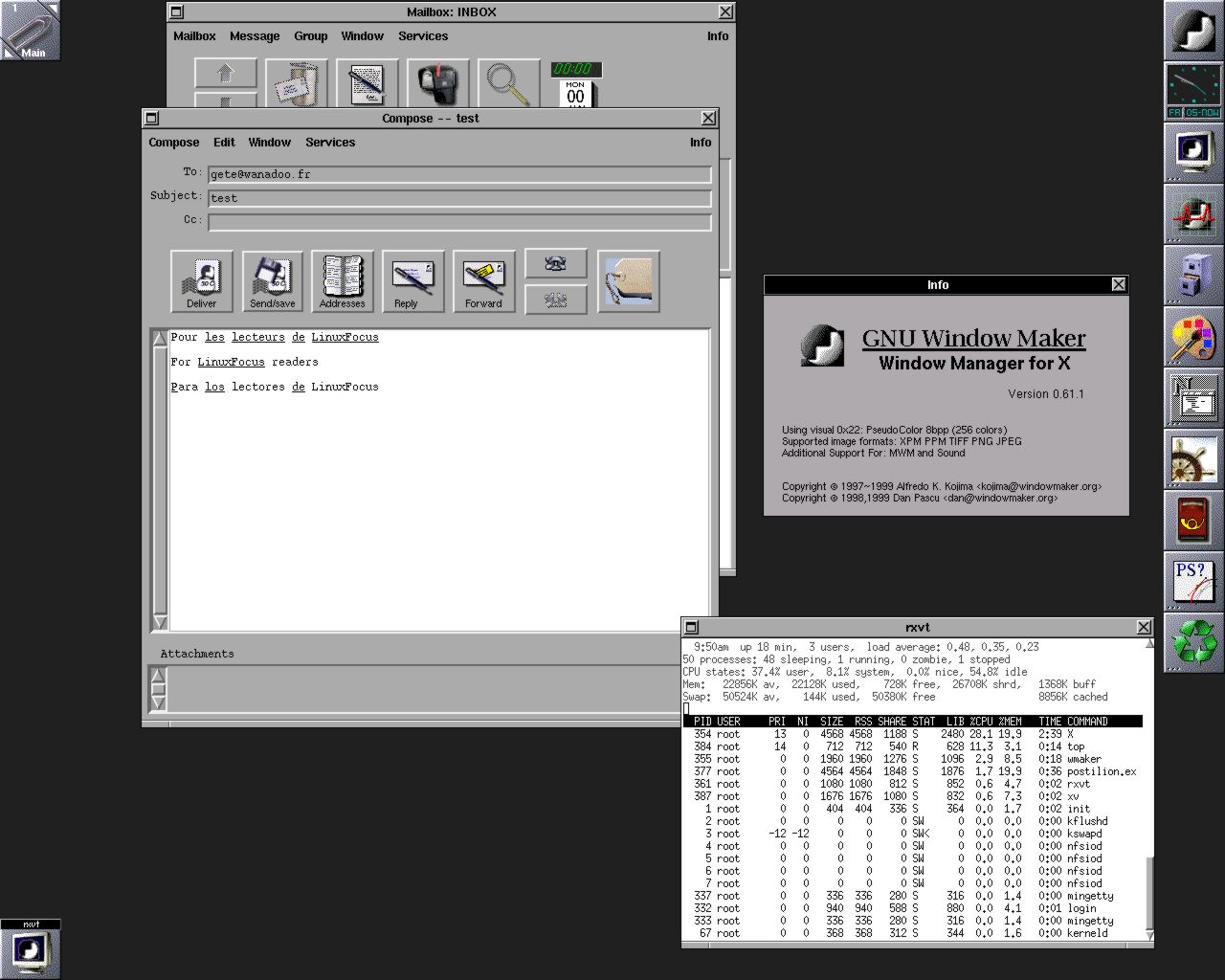 WindowMaker 0.61.1 es la última versión de un gestor de ventanas con el aspecto de NeXT.