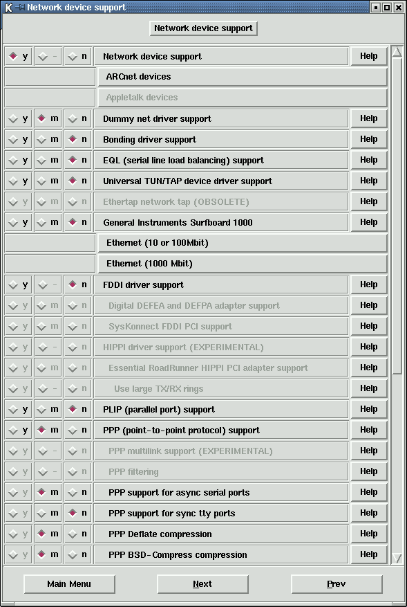 Para poder usar el soporte pcmcia correctamente debes activar ñetwork support' durante la compilación, pero debes desactivar todos los otros drivers para tarjetas de red. Y, como ya ha sido comentado con la figura 11, debes, por supuesto, activar también 'TCP/IP support' si quieres usar Internet.