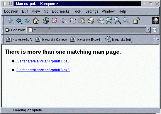 Para comprobar si existen varias versiones de páginas de manual se puede utilizar el comando wichman como se ha mostrado anteriormente (descargable desde mi página, o bien tecleando simplemente "man:printf" en konqueror que nos devolverá: