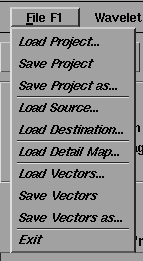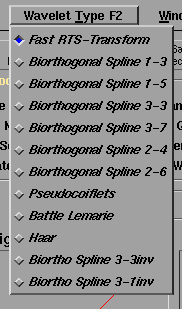 Este menú permite elegir el tipo de onda y por lo tanto el tipo de transformación. La elección es un tanto científica aunque el tipo "RTS-Transform" es suficiente para la mayoría de los casos en especial para las vistas previas. Para resultados de alta calidad conviene elegir entre los elementos de la lista comprendidos entre "Biorthogonal Spline" y "Battle Lemarie".