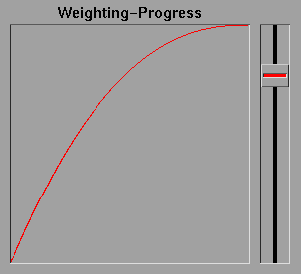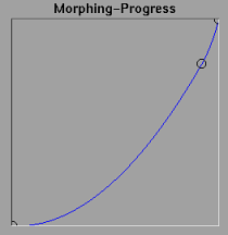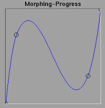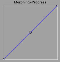 Es posible modificar la transición del morphing. El eje X representa el tiempo o la posición de la imagen dentro de la animación, a la izquierda se tiene la imagen fuente y a la derecha la imagen de destino.
