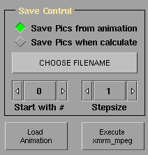 "Save Pics from animation" guarda cada fotograma en un archivo tif después del cálculo de la animación. Previamente hay que elegir un directorio y un nombre_de_archivo.tif (los archivos quedarán almacenados de la siguiente manera: nombre_de_archivo000.tif, nombre_de_archivo001.tif, nombre_de_archivo002.tif, etc).