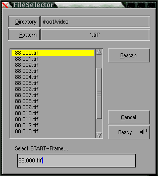 Última operación: pulsar sobre "Execute xmrm_mpeg" elegir como START-frame entre los 50 archivos con extensión tif el que se denomina nombre_de_archivo000.tif y como LAST-frame el nombre_de_archivo049.tif. A continuación pulsar "GO" para crear el archivo de video mpeg que se denominará nombre_de_archivo.mpg y que se almacenará en el mismo directorio de los 50 archivos tif.