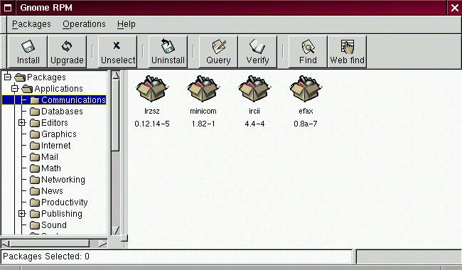 Eso presentará la ventana principal de GnoRPM (como se muestra en la