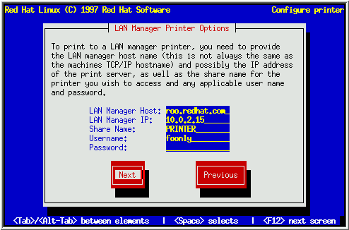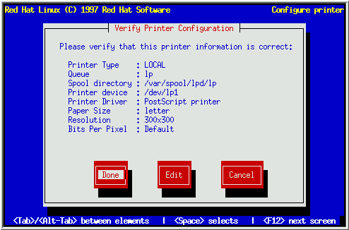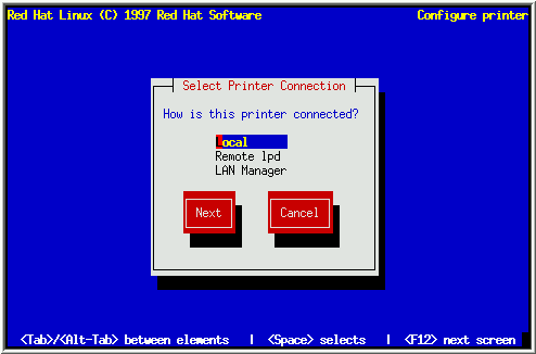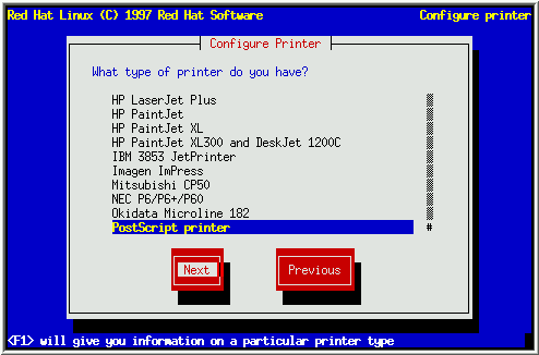 Ahora verá una caja de diálogos titulada ``Configure Printer'' (vea la figura 40). Seleccione el tipo de impresora que más se acerque a la suya. Seleccione Next, y presione [Espacio] para continuar.