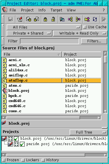 Con el editor de proyectos puedes ver todos los ficheros de código que pertenecen