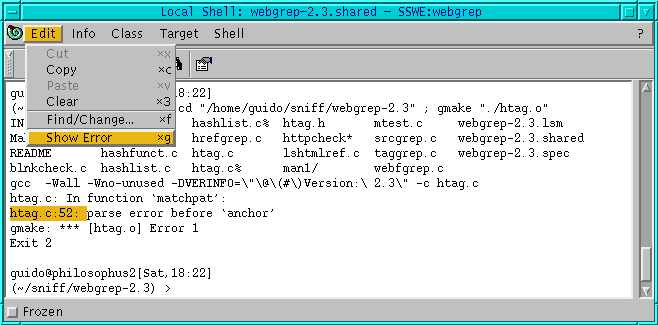 for a description of problems that I had with this shell window.