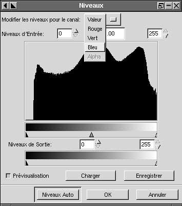 Aquí he utilizado los niveles (entrada) : cursor del medio (verde) sobre la izquierda, y el de