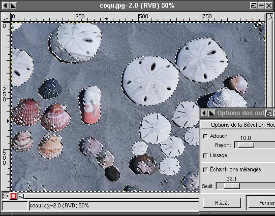 tendremos una selección de todas las conchas. Hay que utilizar el lazo con la tecla "ctrl" para suprimir de la
