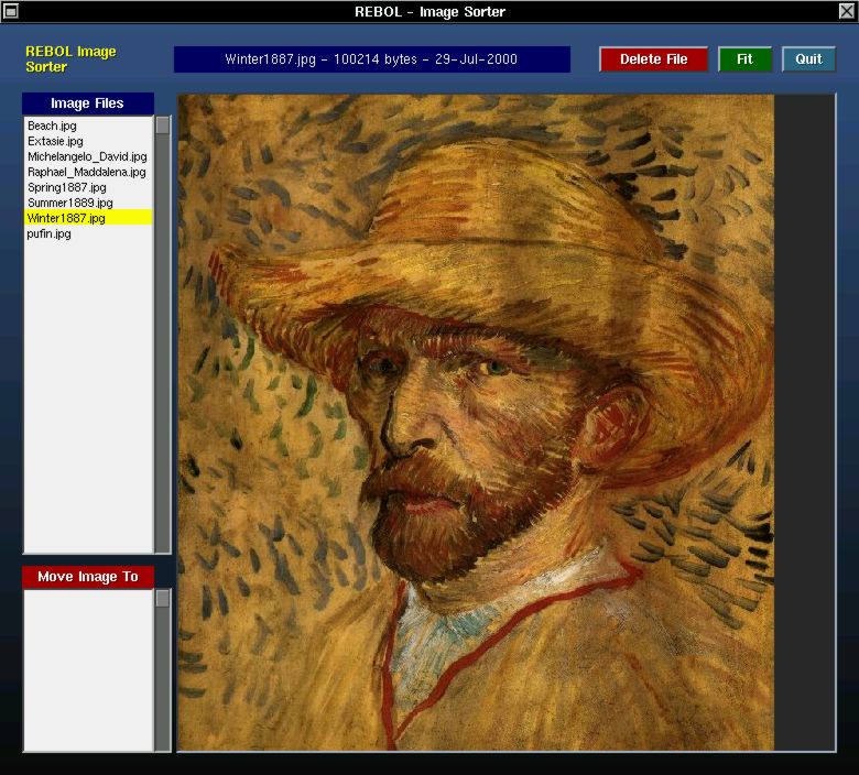 Rebol/View is een op zichzelf staande executable, ongeveer even groot als Rebol/Core. Het is nog een beta versie (0.9.9 release 4.1).