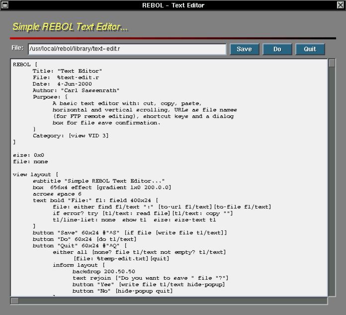 Daarnaast heb je Rebol/View. In het kort kun je zeggen dat het de GUI (Grafische gebruikers interface) voor Rebol is.