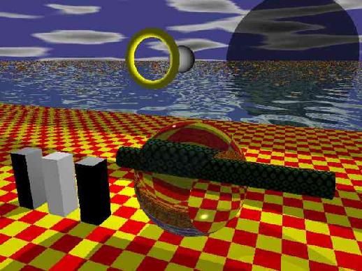 The animations were built in low resolution with only 15 frames in JPEG format. Limiting the resolution and size of the animation we hope to avoid using too much hard disk and making this article slow to download. Nevertheless, as always the sources for these images will also be provided and the readers have access to the tool 'pov' (discussed in the previous issue) that will render the images at any desired resolution, or allow readers to modify and experiment with the images.